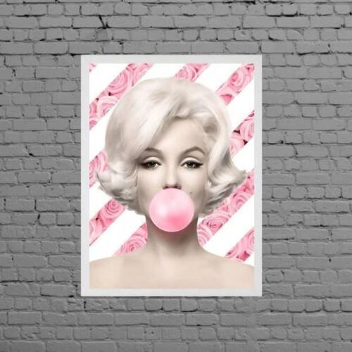 Quadro Marilyn Bubble Gum Floral 45X34Cm Moldura Branca