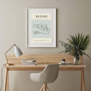 Quadro matisse mulher azul e bege - 60x48cm Moldura: madeira branca Informações do produto tire todas as suas dúvidas no descritivo abaixo: decoração para quarto, sala, cozinha, escritório, área gourmet e muito mais. Chega de paredes vazias medidas - cada peça tem 60x48cm . Material do papel - papel fotográfico brilhante de altíssima resolução acabamento - todos os quadros são acompanhados de vidro para proteção da imagem. - moldura em madeira maciça na cor preta ou branca conforme produto escolhido e pendurador. - paspatur branco com 7cm de largura - os quadros são embalados de forma segura com plástico bolha com camada dupla de acordo com o tamanho dos quadros. Garantia - garantia de 3 meses. Meu quadro chegou. Como posso fixá-lo Você precisa apenas de um martelo e um prego, pois os quadros já vão acompanhados de penduradores. Esta é a forma mais indicada. Como posso limpar meu quadro A limpeza é feita como um móvel comum da sua casa. Apenas um pano seco ou espanador são suficientes para tal Ean: 7893886738623