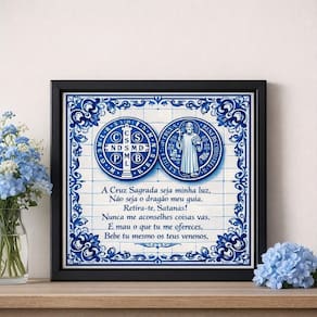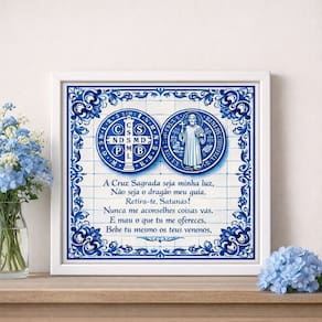 Quadro Medalha São Bento Com Oração 33x33cm Mold Preta