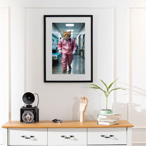 Quadro Médico Gato - 60x48cm - Cor: Moldura Preta