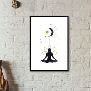 Quadro meditação - conexão universo 45x34cm - com vidro Moldura: madeira branca Informações do produto tire todas as suas dúvidas no descritivo abaixo: decoração para quarto, sala, cozinha, escritório, área gourmet e muito mais. Chega de paredes vazias medidas - cada peça tem 45x34cm a3 . Material do papel - papel fotográfico brilhante de altíssima resolução acabamento - todos os quadros são acompanhados de vidro para proteção da imagem. - moldura em madeira maciça na cor preta ou branca conforme produto escolhido e pendurador . - os quadros são embalados de forma segura com plástico bolha com camada dupla de acordo com o tamanho dos quadros. Garantia - garantia de 3 meses. Meu quadro chegou. Como posso fixá-lo Você precisa apenas de um martelo e um prego, pois os quadros já vão acompanhados de penduradores. Esta é a forma mais indicada. Como posso limpar meu quadro A limpeza é feita como um móvel comum da sua casa. Apenas um pano seco ou espanador são suficientes para tal