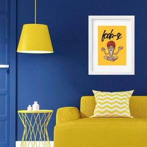 Quadro Meditação Humor - 60x48cm - Moldura: Madeira preta