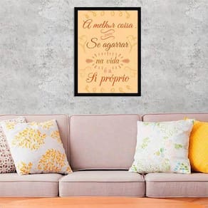 Quadro melhor coisa para se agarrar na vida 45x34cm - com vidro Moldura: madeira preta Informações do produto tire todas as suas dúvidas no descritivo abaixo: decoração para quarto, sala, cozinha, escritório, área gourmet e muito mais. Chega de paredes vazias medidas - cada peça tem 45x34cm a3 . Material do papel - papel fotográfico brilhante de altíssima resolução acabamento - todos os quadros são acompanhados de vidro para proteção da imagem. - moldura em madeira maciça na cor preta e pendurador . - os quadros são embalados de forma segura com plástico bolha com camada dupla de acordo com o tamanho dos quadros. - de 3 meses. Meu quadro chegou. Como posso fixá-lo Você precisa apenas de um martelo e um prego, pois os quadros já vão acompanhados de penduradores. Esta é a forma mais indicada. Como posso limpar meu quadro A limpeza é feita como um móvel comum da sua casa. Apenas um pano seco ou espanador são suficientes para tal Ean: 7895142163286