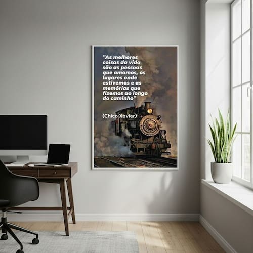 INFORMAÇÕES DO PRODUTO TIRE TODAS AS SUAS DÚVIDAS NO DESCRITIVO ABAIXO: Decoração para quarto, sala, cozinha, escritório, área gourmet e muito mais. Chega de paredes vazias! MEDIDAS - Cada Peça tem 70x50cm . MATERIAL DO PAPEL - Papel fotográfico brilhante de altíssima resolução ACABAMENTO - Todos os quadros são acompanhados de vidro para proteção da imagem. - Moldura em madeira maciça na cor preta ou branca (conforme produto escolhido) e pendurador. - Os quadros são embalados de forma segura com plástico bolha com camada dupla de acordo com o tamanho dos quadros. GARANTIA - Garantia de 3 meses. MEU QUADRO CHEGOU. COMO POSSO FIXÁ-LO? Você precisa apenas de um martelo e um prego, pois os quadros já vão acompanhados de penduradores. Esta é a forma mais indicada. COMO POSSO LIMPAR MEU QUADRO? A limpeza é feita como um móvel comum da sua casa. Apenas um pano seco ou espanador são suficientes para tal