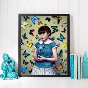 Quadro menina com borboletas 33x24cm - com vidro Moldura: madeira preta Informações do produto Decoração para quarto, sala, cozinha, escritório, área gourmet e muito mais. Chega de paredes vazias medidas - cada peça tem 33x24cm a4 . Material do papel - papel fotográfico brilhante de altíssima resolução Acabamento - todos os quadros são acompanhados de vidro para proteção da imagem. - Moldura em madeira maciça na cor preta e pendurador . - Os quadros são embalados de forma segura com plástico bolha com camada dupla de acordo com o tamanho dos quadros. - de 3 meses. Meu quadro chegou. Como posso fixá-lo Você precisa apenas de um martelo e um prego, pois os quadros já vão acompanhados de penduradores. Esta é a forma mais indicada. Como posso limpar meu quadro A limpeza é feita como um móvel comum da sua casa. Apenas um pano seco ou espanador são suficientes para tal