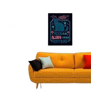 Quadro meow is like aloha, it can mean anything 33x24cm - com vidro Moldura: madeira preta Informações do produto tire todas as suas dúvidas no descritivo abaixo: decoração para quarto, sala, cozinha, escritório, área gourmet e muito mais. Chega de paredes vazias medidas - cada peça tem 33x24cm a4 . Material do papel - papel fotográfico brilhante de altíssima resolução acabamento - todos os quadros são acompanhados de vidro para proteção da imagem. - moldura em madeira maciça na cor preta e pendurador . - os quadros são embalados de forma segura com plástico bolha com camada dupla de acordo com o tamanho dos quadros. - de 3 meses. Meu quadro chegou. Como posso fixá-lo Você precisa apenas de um martelo e um prego, pois os quadros já vão acompanhados de penduradores. Esta é a forma mais indicada. Como posso limpar meu quadro A limpeza é feita como um móvel comum da sua casa. Apenas um pano seco ou espanador são suficientes para tal Marca: Não Informado