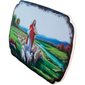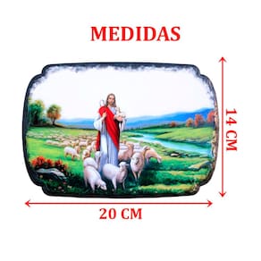 Quadro Mesa Colecionável Jesus Cristo Ovelhas Campo 20x14cm -