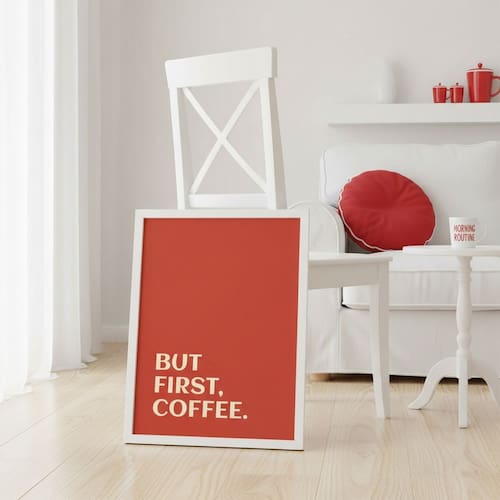 Quadro Minimal First Coffee Red 45x34cm Mold Branca