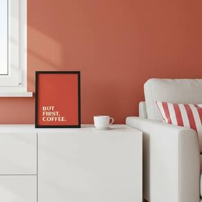 Quadro Minimal First Coffee Red 45x34cm Mold Preta
