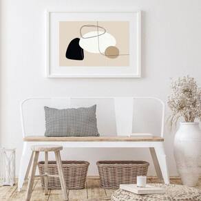 Quadro minimalista bege com preto - 60x48cm Moldura: madeira branca Informações do produto tire todas as suas dúvidas no descritivo abaixo: decoração para quarto, sala, cozinha, escritório, área gourmet e muito mais. Chega de paredes vazias medidas - cada peça tem 60x48cm . Material do papel - papel fotográfico brilhante de altíssima resolução acabamento - todos os quadros são acompanhados de vidro para proteção da imagem. - moldura em madeira maciça na cor preta ou branca conforme produto escolhido e pendurador. - paspatur branco com 7cm de largura - os quadros são embalados de forma segura com plástico bolha com camada dupla de acordo com o tamanho dos quadros. Garantia - garantia de 3 meses. Meu quadro chegou. Como posso fixá-lo Você precisa apenas de um martelo e um prego, pois os quadros já vão acompanhados de penduradores. Esta é a forma mais indicada. Como posso limpar meu quadro A limpeza é feita como um móvel comum da sua casa. Apenas um pano seco ou espanador são suficientes para tal