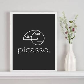 Quadro minimalista fundo preto picasso 33x24cm - com vidro Moldura: madeira preta Informações do produto tire todas as suas dúvidas no descritivo abaixo: decoração para quarto, sala, cozinha, escritório, área gourmet e muito mais. Chega de paredes vazias medidas - cada peça tem 33x24cm a4 . Material do papel - papel fotográfico brilhante de altíssima resolução acabamento - todos os quadros são acompanhados de vidro para proteção da imagem. - moldura em madeira maciça na cor preta ou branca conforme produto escolhido e pendurador . - os quadros são embalados de forma segura com plástico bolha com camada dupla de acordo com o tamanho dos quadros. Garantia - garantia de 3 meses. Meu quadro chegou. Como posso fixá-lo Você precisa apenas de um martelo e um prego, pois os quadros já vão acompanhados de penduradores. Esta é a forma mais indicada. Como posso limpar meu quadro A limpeza é feita como um móvel comum da sua casa. Apenas um pano seco ou espanador são suficientes para tal