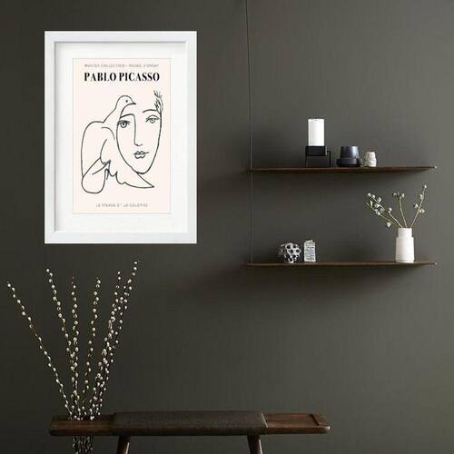 Quadro minimalista pablo picasso - 60x48cm Moldura: madeira branca Informações do produto tire todas as suas dúvidas no descritivo abaixo: decoração para quarto, sala, cozinha, escritório, área gourmet e muito mais. Chega de paredes vazias medidas - cada peça tem 60x48cm . Material do papel - papel fotográfico brilhante de altíssima resolução acabamento - todos os quadros são acompanhados de vidro para proteção da imagem. - moldura em madeira maciça na cor preta ou branca conforme produto escolhido e pendurador. - paspatur branco com 7cm de largura - os quadros são embalados de forma segura com plástico bolha com camada dupla de acordo com o tamanho dos quadros. Garantia - garantia de 3 meses. Meu quadro chegou. Como posso fixá-lo Você precisa apenas de um martelo e um prego, pois os quadros já vão acompanhados de penduradores. Esta é a forma mais indicada. Como posso limpar meu quadro A limpeza é feita como um móvel comum da sua casa. Apenas um pano seco ou espanador são suficientes para tal