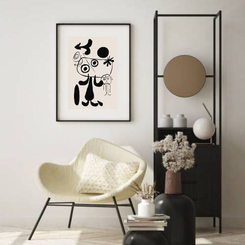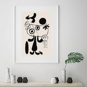 Quadro Miró Preto e Branco - 60x48cm - Cor: Moldura Preta
