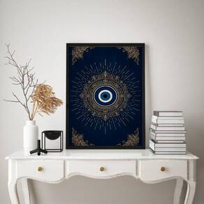 Quadro mistico mandala olho grego - azul dourado 45x34cm Cor: moldura preta Informações do produto tire todas as suas dúvidas no descritivo abaixo: decoração para quarto, sala, cozinha, escritório, área gourmet e muito mais. Chega de paredes vazias. Medidas - cada peça tem 45x34cm a3 . Material do papel - papel fotográfico brilhante de altíssima resolução acabamento - todos os quadros são acompanhados de uma película de acetato para proteção da imagem. - os quadros são embalados de forma segura com plástico bolha com camada dupla de acordo com o tamanho dos quadros. - de 3 meses. Meu quadro chegou. Como posso fixá-lo Você precisa apenas de um martelo e um prego, pois os quadros já vão acompanhados de penduradores. Esta é a forma mais indicada. Caso prefira, você pode utilizar uma fita dupla face neste caso, sugerimos de alta qualidade para evitar que descole e seu quadro caia . Como posso limpar meu quadro A limpeza é feita como um móvel comum da sua casa. Apenas um pano seco ou espanador são suficientes para tal Marca: Não Informado
