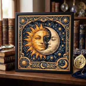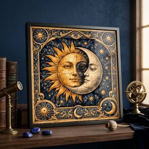 Quadro Místico Sol e Lua 33x33cm Mold Branca