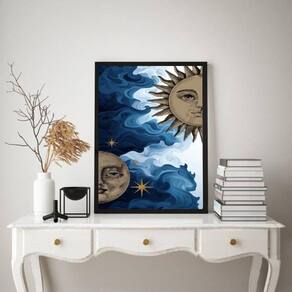 Quadro mistico sol e lua - metades aquarela 45x34cm Cor: moldura branca Informações do produto tire todas as suas dúvidas no descritivo abaixo: decoração para quarto, sala, cozinha, escritório, área gourmet e muito mais. Chega de paredes vazias. Medidas - cada peça tem 45x34cm a3 . Material do papel - papel fotográfico brilhante de altíssima resolução acabamento - todos os quadros são acompanhados de uma película de acetato para proteção da imagem. - os quadros são embalados de forma segura com plástico bolha com camada dupla de acordo com o tamanho dos quadros. - de 3 meses. Meu quadro chegou. Como posso fixá-lo Você precisa apenas de um martelo e um prego, pois os quadros já vão acompanhados de penduradores. Esta é a forma mais indicada. Caso prefira, você pode utilizar uma fita dupla face neste caso, sugerimos de alta qualidade para evitar que descole e seu quadro caia . Como posso limpar meu quadro A limpeza é feita como um móvel comum da sua casa. Apenas um pano seco ou espanador são suficientes para tal Marca: Não Informado