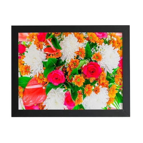 Quadro Mix De Flores Colorido Laranja Moldura Preta 60X40Cm