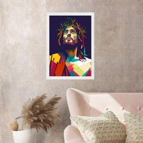 Quadro moderno cristo- geométrico 45x34cm - com vidro Moldura: madeira preta Informações do produto tire todas as suas dúvidas no descritivo abaixo: decoração para quarto, sala, cozinha, escritório, área gourmet e muito mais. Chega de paredes vazias medidas - cada peça tem 45x34cm a3 . Material do papel - papel fotográfico brilhante de altíssima resolução acabamento - todos os quadros são acompanhados de vidro para proteção da imagem. - moldura em madeira maciça na cor preta ou branca conforme produto escolhido e pendurador . - os quadros são embalados de forma segura com plástico bolha com camada dupla de acordo com o tamanho dos quadros. Garantia - garantia de 3 meses. Meu quadro chegou. Como posso fixá-lo Você precisa apenas de um martelo e um prego, pois os quadros já vão acompanhados de penduradores. Esta é a forma mais indicada. Como posso limpar meu quadro A limpeza é feita como um móvel comum da sua casa. Apenas um pano seco ou espanador são suficientes para tal