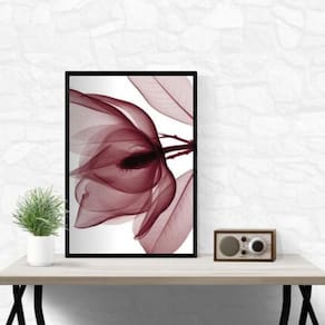 Quadro moderno flor bordô 45x34cm - com vidro Cor: moldura branca Informações do produto tire todas as suas dúvidas no descritivo abaixo: decoração para quarto, sala, cozinha, escritório, área gourmet e muito mais. Chega de paredes vazias medidas - cada peça tem 45x34cm a3 . Material do papel - papel fotográfico brilhante de altíssima resolução acabamento - todos os quadros são acompanhados de vidro para proteção da imagem. - moldura em madeira maciça na cor preta ou branca conforme produto escolhido e pendurador . - os quadros são embalados de forma segura com plástico bolha com camada dupla de acordo com o tamanho dos quadros. Garantia - garantia de 3 meses. Meu quadro chegou. Como posso fixá-lo Você precisa apenas de um martelo e um prego, pois os quadros já vão acompanhados de penduradores. Esta é a forma mais indicada. Como posso limpar meu quadro A limpeza é feita como um móvel comum da sua casa. Apenas um pano seco ou espanador são suficientes para tal