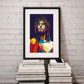 Quadro moderno jesus- 60x48cm Moldura: madeira branca Informações do produto tire todas as suas dúvidas no descritivo abaixo: decoração para quarto, sala, cozinha, escritório, área gourmet e muito mais. Chega de paredes vazias medidas - cada peça tem 60x48cm . Material do papel - papel fotográfico brilhante de altíssima resolução acabamento - todos os quadros são acompanhados de vidro para proteção da imagem. - moldura em madeira maciça na cor preta ou branca conforme produto escolhido e pendurador. - paspatur branco com 7cm de largura - os quadros são embalados de forma segura com plástico bolha com camada dupla de acordo com o tamanho dos quadros. Garantia - garantia de 3 meses. Meu quadro chegou. Como posso fixá-lo Você precisa apenas de um martelo e um prego, pois os quadros já vão acompanhados de penduradores. Esta é a forma mais indicada. Como posso limpar meu quadro A limpeza é feita como um móvel comum da sua casa. Apenas um pano seco ou espanador são suficientes para tal