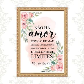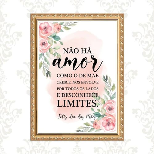 Quadro moldura dourada amor de mãe 33x24cm Acabamento: com vidro Informações do produto tire todas as suas dúvidas no descritivo abaixo: decoração para quarto, sala, cozinha, escritório, área gourmet e muito mais. Chega de paredes vazias medidas - cada peça tem 33x24cm a4 . Material do papel - papel fotográfico brilhante de altíssima resolução acabamento - todos os quadros são acompanhados de vidro ou uma película de acetato para proteção da imagem conforme escolha . - os quadros são embalados de forma segura com plástico bolha com camada dupla de acordo com o tamanho dos quadros. Garantia - garantia de 3 meses. Meu quadro chegou. Como posso fixá-lo Você precisa apenas de um martelo e um prego, pois os quadros já vão acompanhados de penduradores. Esta é a forma mais indicada. Caso prefira, você pode utilizar uma fita dupla face neste caso, sugerimos de alta qualidade para evitar que descole e seu quadro caia . Como posso limpar meu quadro A limpeza é feita como um móvel comum da sua casa. Apenas um pano seco ou espanador são suficientes para tal