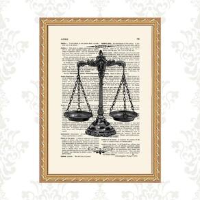 Quadro Moldura Dourada Balança Da Justiça 45X34Cm