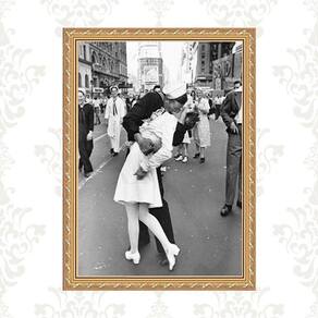 Quadro moldura dourada beijo segunda guerra 24x18cm Acabamento: com acetato Informações do produto tire todas as suas dúvidas no descritivo abaixo: decoração para quarto, sala, cozinha, escritório, área gourmet e muito mais. Chega de paredes vazias medidas - cada peça tem 24x18cm a5 . Material do papel - papel fotográfico brilhante de altíssima resolução acabamento - todos os quadros são acompanhados de vidro ou uma película de acetato para proteção da imagem conforme escolha . - os quadros são embalados de forma segura com plástico bolha com camada dupla de acordo com o tamanho dos quadros. Garantia - garantia de 3 meses. Meu quadro chegou. Como posso fixá-lo Você precisa apenas de um martelo e um prego, pois os quadros já vão acompanhados de penduradores. Esta é a forma mais indicada. Caso prefira, você pode utilizar uma fita dupla face neste caso, sugerimos de alta qualidade para evitar que descole e seu quadro caia . Como posso limpar meu quadro A limpeza é feita como um móvel comum da sua casa. Apenas um pano seco ou espanador são suficientes para tal