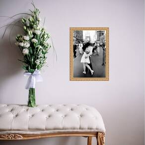 Quadro moldura dourada beijo segunda guerra 45x34cm Acabamento: com acetato Informações do produto tire todas as suas dúvidas no descritivo abaixo: decoração para quarto, sala, cozinha, escritório, área gourmet e muito mais. Chega de paredes vazias. Medidas - cada peça tem 45x34cm a3 . Material do papel - papel fotográfico brilhante de altíssima resolução acabamento - todos os quadros são acompanhados de vidro ou uma película de acetato para proteção da imagem conforme escolha . - os quadros são embalados de forma segura com plástico bolha com camada dupla de acordo com o tamanho dos quadros. Garantia - garantia de 3 meses. Meu quadro chegou. Como posso fixá-lo Você precisa apenas de um martelo e um prego, pois os quadros já vão acompanhados de penduradores. Esta é a forma mais indicada. Caso prefira, você pode utilizar uma fita dupla face neste caso, sugerimos de alta qualidade para evitar que descole e seu quadro caia . Como posso limpar meu quadro A limpeza é feita como um móvel comum da sua casa. Apenas um pano seco ou espanador são suficientes para tal