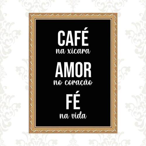 Quadro moldura dourada café amor fé 24x18cm Acabamento: com vidro Informações do produto tire todas as suas dúvidas no descritivo abaixo: decoração para quarto, sala, cozinha, escritório, área gourmet e muito mais. Chega de paredes vazias medidas - cada peça tem 24x18cm a5 . Material do papel - papel fotográfico brilhante de altíssima resolução acabamento - todos os quadros são acompanhados de vidro ou uma película de acetato para proteção da imagem conforme escolha . - os quadros são embalados de forma segura com plástico bolha com camada dupla de acordo com o tamanho dos quadros. - de 3 meses. Meu quadro chegou. Como posso fixá-lo Você precisa apenas de um martelo e um prego, pois os quadros já vão acompanhados de penduradores. Esta é a forma mais indicada. Caso prefira, você pode utilizar uma fita dupla face neste caso, sugerimos de alta qualidade para evitar que descole e seu quadro caia . Como posso limpar meu quadro A limpeza é feita como um móvel comum da sua casa. Apenas um pano seco ou espanador são suficientes para tal Marca: Não Informado
