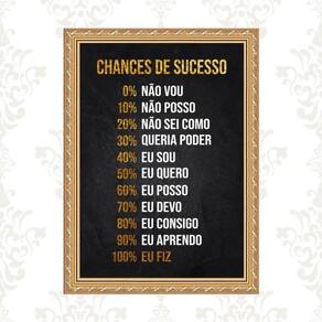 Quadro moldura dourada chances sucesso 24x18cm Acabamento: com vidro Informações do produto tire todas as suas dúvidas no descritivo abaixo: decoração para quarto, sala, cozinha, escritório, área gourmet e muito mais. Chega de paredes vazias medidas - cada peça tem 24x18cm a5 . Material do papel - papel fotográfico brilhante de altíssima resolução acabamento - todos os quadros são acompanhados de vidro ou uma película de acetato para proteção da imagem conforme escolha . - os quadros são embalados de forma segura com plástico bolha com camada dupla de acordo com o tamanho dos quadros. - de 3 meses. Meu quadro chegou. Como posso fixá-lo Você precisa apenas de um martelo e um prego, pois os quadros já vão acompanhados de penduradores. Esta é a forma mais indicada. Caso prefira, você pode utilizar uma fita dupla face neste caso, sugerimos de alta qualidade para evitar que descole e seu quadro caia . Como posso limpar meu quadro A limpeza é feita como um móvel comum da sua casa. Apenas um pano seco ou espanador são suficientes para tal Marca: Não Informado