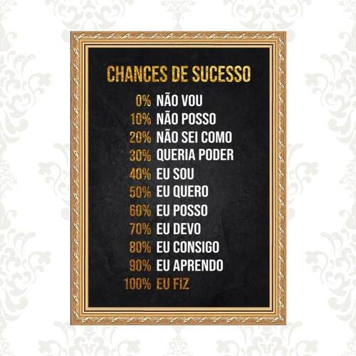 Quadro Moldura Dourada Chances Sucesso 45X34Cm