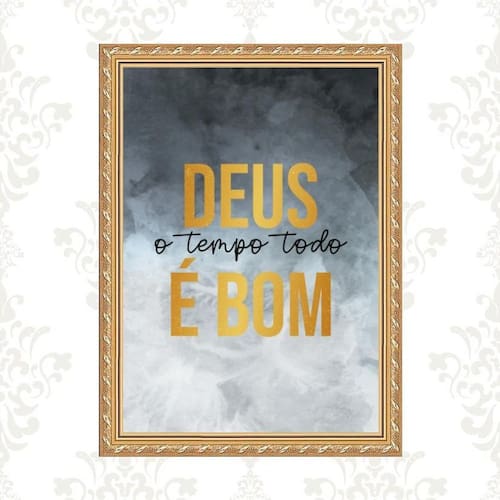 Quadro moldura dourada deus é bom 24x18cm Acabamento: com vidro Informações do produto tire todas as suas dúvidas no descritivo abaixo: decoração para quarto, sala, cozinha, escritório, área gourmet e muito mais. Chega de paredes vazias medidas - cada peça tem 24x18cm a5 . Material do papel - papel fotográfico brilhante de altíssima resolução acabamento - todos os quadros são acompanhados de vidro ou uma película de acetato para proteção da imagem conforme escolha . - os quadros são embalados de forma segura com plástico bolha com camada dupla de acordo com o tamanho dos quadros. Garantia - garantia de 3 meses. Meu quadro chegou. Como posso fixá-lo Você precisa apenas de um martelo e um prego, pois os quadros já vão acompanhados de penduradores. Esta é a forma mais indicada. Caso prefira, você pode utilizar uma fita dupla face neste caso, sugerimos de alta qualidade para evitar que descole e seu quadro caia . Como posso limpar meu quadro A limpeza é feita como um móvel comum da sua casa. Apenas um pano seco ou espanador são suficientes para tal