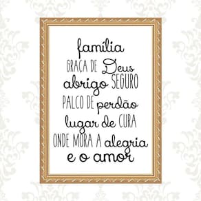 Quadro moldura dourada família graça deus 24x18cm Acabamento: com acetato Informações do produto tire todas as suas dúvidas no descritivo abaixo: decoração para quarto, sala, cozinha, escritório, área gourmet e muito mais. Chega de paredes vazias medidas - cada peça tem 24x18cm a5 . Material do papel - papel fotográfico brilhante de altíssima resolução acabamento - todos os quadros são acompanhados de vidro ou uma película de acetato para proteção da imagem conforme escolha . - os quadros são embalados de forma segura com plástico bolha com camada dupla de acordo com o tamanho dos quadros. Garantia - garantia de 3 meses. Meu quadro chegou. Como posso fixá-lo Você precisa apenas de um martelo e um prego, pois os quadros já vão acompanhados de penduradores. Esta é a forma mais indicada. Caso prefira, você pode utilizar uma fita dupla face neste caso, sugerimos de alta qualidade para evitar que descole e seu quadro caia . Como posso limpar meu quadro A limpeza é feita como um móvel comum da sua casa. Apenas um pano seco ou espanador são suficientes para tal