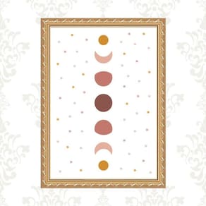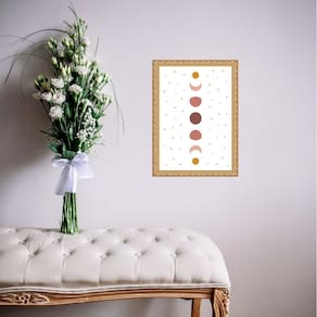Quadro moldura dourada fases lua boho 45x34cm Acabamento: com vidro Informações do produto tire todas as suas dúvidas no descritivo abaixo: decoração para quarto, sala, cozinha, escritório, área gourmet e muito mais. Chega de paredes vazias. Medidas - cada peça tem 45x34cm a3 . Material do papel - papel fotográfico brilhante de altíssima resolução acabamento - todos os quadros são acompanhados de vidro ou uma película de acetato para proteção da imagem conforme escolha . - os quadros são embalados de forma segura com plástico bolha com camada dupla de acordo com o tamanho dos quadros. Garantia - garantia de 3 meses. Meu quadro chegou. Como posso fixá-lo Você precisa apenas de um martelo e um prego, pois os quadros já vão acompanhados de penduradores. Esta é a forma mais indicada. Caso prefira, você pode utilizar uma fita dupla face neste caso, sugerimos de alta qualidade para evitar que descole e seu quadro caia . Como posso limpar meu quadro A limpeza é feita como um móvel comum da sua casa. Apenas um pano seco ou espanador são suficientes para tal