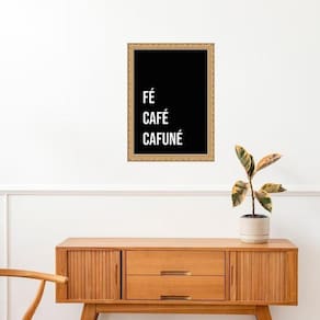 Quadro moldura dourada fé café cafuné 45x34cm Acabamento: com vidro Informações do produto tire todas as suas dúvidas no descritivo abaixo: decoração para quarto, sala, cozinha, escritório, área gourmet e muito mais. Chega de paredes vazias. Medidas - cada peça tem 45x34cm a3 . Material do papel - papel fotográfico brilhante de altíssima resolução acabamento - todos os quadros são acompanhados de vidro ou uma película de acetato para proteção da imagem conforme escolha . - os quadros são embalados de forma segura com plástico bolha com camada dupla de acordo com o tamanho dos quadros. Garantia - garantia de 3 meses. Meu quadro chegou. Como posso fixá-lo Você precisa apenas de um martelo e um prego, pois os quadros já vão acompanhados de penduradores. Esta é a forma mais indicada. Caso prefira, você pode utilizar uma fita dupla face neste caso, sugerimos de alta qualidade para evitar que descole e seu quadro caia . Como posso limpar meu quadro A limpeza é feita como um móvel comum da sua casa. Apenas um pano seco ou espanador são suficientes para tal