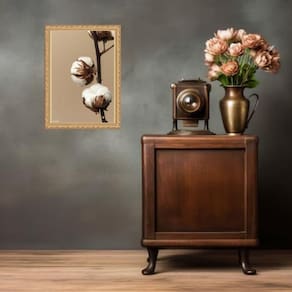 Quadro moldura dourada flor de algodão 24x18cm Acabamento: com acetato Informações do produto tire todas as suas dúvidas no descritivo abaixo: decoração para quarto, sala, cozinha, escritório, área gourmet e muito mais. Chega de paredes vazias medidas - cada peça tem 24x18cm a5 . Material do papel - papel fotográfico brilhante de altíssima resolução acabamento - todos os quadros são acompanhados de vidro ou uma película de acetato para proteção da imagem conforme escolha . - os quadros são embalados de forma segura com plástico bolha com camada dupla de acordo com o tamanho dos quadros. Garantia - garantia de 3 meses. Meu quadro chegou. Como posso fixá-lo Você precisa apenas de um martelo e um prego, pois os quadros já vão acompanhados de penduradores. Esta é a forma mais indicada. Caso prefira, você pode utilizar uma fita dupla face neste caso, sugerimos de alta qualidade para evitar que descole e seu quadro caia . Como posso limpar meu quadro A limpeza é feita como um móvel comum da sua casa. Apenas um pano seco ou espanador são suficientes para tal