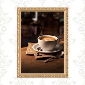 Quadro moldura dourada fotografia café 24x18cm Acabamento: com vidro Informações do produto tire todas as suas dúvidas no descritivo abaixo: decoração para quarto, sala, cozinha, escritório, área gourmet e muito mais. Chega de paredes vazias medidas - cada peça tem 24x18cm a5 . Material do papel - papel fotográfico brilhante de altíssima resolução acabamento - todos os quadros são acompanhados de vidro ou uma película de acetato para proteção da imagem conforme escolha . - os quadros são embalados de forma segura com plástico bolha com camada dupla de acordo com o tamanho dos quadros. Garantia - garantia de 3 meses. Meu quadro chegou. Como posso fixá-lo Você precisa apenas de um martelo e um prego, pois os quadros já vão acompanhados de penduradores. Esta é a forma mais indicada. Caso prefira, você pode utilizar uma fita dupla face neste caso, sugerimos de alta qualidade para evitar que descole e seu quadro caia . Como posso limpar meu quadro A limpeza é feita como um móvel comum da sua casa. Apenas um pano seco ou espanador são suficientes para tal