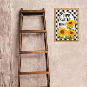 Quadro moldura dourada home sweet home girassóis 24x18cm Acabamento: com acetato Informações do produto tire todas as suas dúvidas no descritivo abaixo: decoração para quarto, sala, cozinha, escritório, área gourmet e muito mais. Chega de paredes vazias medidas - cada peça tem 24x18cm a5 . Material do papel - papel fotográfico brilhante de altíssima resolução acabamento - todos os quadros são acompanhados de vidro ou uma película de acetato para proteção da imagem conforme escolha . - os quadros são embalados de forma segura com plástico bolha com camada dupla de acordo com o tamanho dos quadros. Garantia - garantia de 3 meses. Meu quadro chegou. Como posso fixá-lo Você precisa apenas de um martelo e um prego, pois os quadros já vão acompanhados de penduradores. Esta é a forma mais indicada. Caso prefira, você pode utilizar uma fita dupla face neste caso, sugerimos de alta qualidade para evitar que descole e seu quadro caia . Como posso limpar meu quadro A limpeza é feita como um móvel comum da sua casa. Apenas um pano seco ou espanador são suficientes para tal
