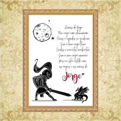 Quadro moldura dourada infantil são jorge 33x24cm Acabamento: com vidro Informações do produto tire todas as suas dúvidas no descritivo abaixo: decoração para quarto, sala, cozinha, escritório, área gourmet e muito mais. Chega de paredes vazias medidas - cada peça tem 33x24cm a4 . Material do papel - papel fotográfico brilhante de altíssima resolução acabamento - todos os quadros são acompanhados de vidro ou uma película de acetato para proteção da imagem conforme escolha . - os quadros são embalados de forma segura com plástico bolha com camada dupla de acordo com o tamanho dos quadros. Garantia - garantia de 3 meses. Meu quadro chegou. Como posso fixá-lo Você precisa apenas de um martelo e um prego, pois os quadros já vão acompanhados de penduradores. Esta é a forma mais indicada. Caso prefira, você pode utilizar uma fita dupla face neste caso, sugerimos de alta qualidade para evitar que descole e seu quadro caia . Como posso limpar meu quadro A limpeza é feita como um móvel comum da sua casa. Apenas um pano seco ou espanador são suficientes para tal