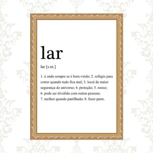 Quadro moldura dourada lar significado 33x24cm Acabamento: com vidro Informações do produto tire todas as suas dúvidas no descritivo abaixo: decoração para quarto, sala, cozinha, escritório, área gourmet e muito mais. Chega de paredes vazias medidas - cada peça tem 33x24cm a4 . Material do papel - papel fotográfico brilhante de altíssima resolução acabamento - todos os quadros são acompanhados de vidro ou uma película de acetato para proteção da imagem conforme escolha . - os quadros são embalados de forma segura com plástico bolha com camada dupla de acordo com o tamanho dos quadros. - de 3 meses. Meu quadro chegou. Como posso fixá-lo Você precisa apenas de um martelo e um prego, pois os quadros já vão acompanhados de penduradores. Esta é a forma mais indicada. Caso prefira, você pode utilizar uma fita dupla face neste caso, sugerimos de alta qualidade para evitar que descole e seu quadro caia . Como posso limpar meu quadro A limpeza é feita como um móvel comum da sua casa. Apenas um pano seco ou espanador são suficientes para tal Marca: Não Informado