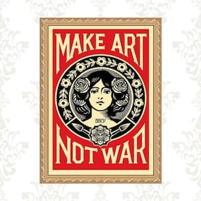 Quadro moldura dourada make art not war 24x18cm Acabamento: com acetato Informações do produto tire todas as suas dúvidas no descritivo abaixo: decoração para quarto, sala, cozinha, escritório, área gourmet e muito mais. Chega de paredes vazias medidas - cada peça tem 24x18cm a5 . Material do papel - papel fotográfico brilhante de altíssima resolução acabamento - todos os quadros são acompanhados de vidro ou uma película de acetato para proteção da imagem conforme escolha . - os quadros são embalados de forma segura com plástico bolha com camada dupla de acordo com o tamanho dos quadros. Garantia - garantia de 3 meses. Meu quadro chegou. Como posso fixá-lo Você precisa apenas de um martelo e um prego, pois os quadros já vão acompanhados de penduradores. Esta é a forma mais indicada. Caso prefira, você pode utilizar uma fita dupla face neste caso, sugerimos de alta qualidade para evitar que descole e seu quadro caia . Como posso limpar meu quadro A limpeza é feita como um móvel comum da sua casa. Apenas um pano seco ou espanador são suficientes para tal