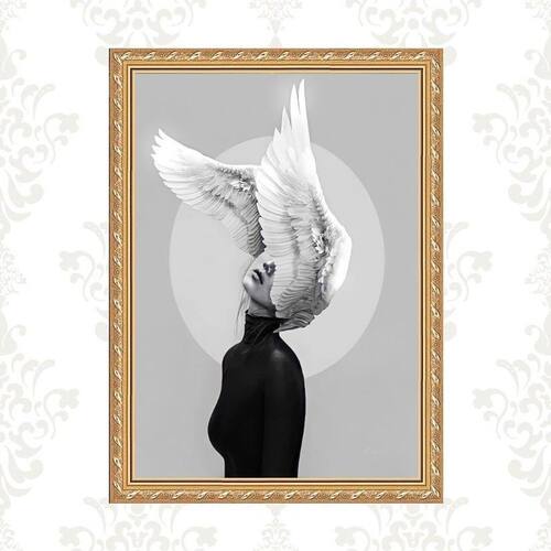 Quadro moldura dourada mulher com asas 24x18cm Acabamento: com vidro Informações do produto tire todas as suas dúvidas no descritivo abaixo: decoração para quarto, sala, cozinha, escritório, área gourmet e muito mais. Chega de paredes vazias medidas - cada peça tem 24x18cm a5 . Material do papel - papel fotográfico brilhante de altíssima resolução acabamento - todos os quadros são acompanhados de vidro ou uma película de acetato para proteção da imagem conforme escolha . - os quadros são embalados de forma segura com plástico bolha com camada dupla de acordo com o tamanho dos quadros. Garantia - garantia de 3 meses. Meu quadro chegou. Como posso fixá-lo Você precisa apenas de um martelo e um prego, pois os quadros já vão acompanhados de penduradores. Esta é a forma mais indicada. Caso prefira, você pode utilizar uma fita dupla face neste caso, sugerimos de alta qualidade para evitar que descole e seu quadro caia . Como posso limpar meu quadro A limpeza é feita como um móvel comum da sua casa. Apenas um pano seco ou espanador são suficientes para tal