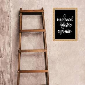 Quadro moldura dourada nada é impossível 33x24cm Acabamento: com vidro Informações do produto tire todas as suas dúvidas no descritivo abaixo: decoração para quarto, sala, cozinha, escritório, área gourmet e muito mais. Chega de paredes vazias medidas - cada peça tem 33x24cm a4 . Material do papel - papel fotográfico brilhante de altíssima resolução acabamento - todos os quadros são acompanhados de vidro ou uma película de acetato para proteção da imagem conforme escolha . - os quadros são embalados de forma segura com plástico bolha com camada dupla de acordo com o tamanho dos quadros. - de 3 meses. Meu quadro chegou. Como posso fixá-lo Você precisa apenas de um martelo e um prego, pois os quadros já vão acompanhados de penduradores. Esta é a forma mais indicada. Caso prefira, você pode utilizar uma fita dupla face neste caso, sugerimos de alta qualidade para evitar que descole e seu quadro caia . Como posso limpar meu quadro A limpeza é feita como um móvel comum da sua casa. Apenas um pano seco ou espanador são suficientes para tal Marca: Não Informado