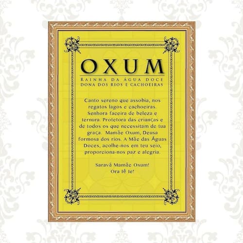 Quadro moldura dourada oração oxum 24x18cm Acabamento: com vidro Informações do produto tire todas as suas dúvidas no descritivo abaixo: decoração para quarto, sala, cozinha, escritório, área gourmet e muito mais. Chega de paredes vazias medidas - cada peça tem 24x18cm a5 . Material do papel - papel fotográfico brilhante de altíssima resolução acabamento - todos os quadros são acompanhados de vidro ou uma película de acetato para proteção da imagem conforme escolha . - os quadros são embalados de forma segura com plástico bolha com camada dupla de acordo com o tamanho dos quadros. Garantia - garantia de 3 meses. Meu quadro chegou. Como posso fixá-lo Você precisa apenas de um martelo e um prego, pois os quadros já vão acompanhados de penduradores. Esta é a forma mais indicada. Caso prefira, você pode utilizar uma fita dupla face neste caso, sugerimos de alta qualidade para evitar que descole e seu quadro caia . Como posso limpar meu quadro A limpeza é feita como um móvel comum da sua casa. Apenas um pano seco ou espanador são suficientes para tal