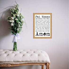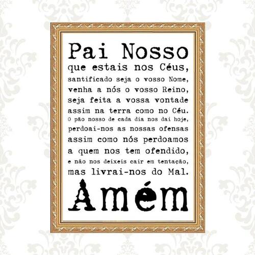 Quadro moldura dourada oração pai nosso 45x34cm Acabamento: com acetato Informações do produto tire todas as suas dúvidas no descritivo abaixo: decoração para quarto, sala, cozinha, escritório, área gourmet e muito mais. Chega de paredes vazias. Medidas - cada peça tem 45x34cm a3 . Material do papel - papel fotográfico brilhante de altíssima resolução acabamento - todos os quadros são acompanhados de vidro ou uma película de acetato para proteção da imagem conforme escolha . - os quadros são embalados de forma segura com plástico bolha com camada dupla de acordo com o tamanho dos quadros. - de 3 meses. Meu quadro chegou. Como posso fixá-lo Você precisa apenas de um martelo e um prego, pois os quadros já vão acompanhados de penduradores. Esta é a forma mais indicada. Caso prefira, você pode utilizar uma fita dupla face neste caso, sugerimos de alta qualidade para evitar que descole e seu quadro caia . Como posso limpar meu quadro A limpeza é feita como um móvel comum da sua casa. Apenas um pano seco ou espanador são suficientes para tal Marca: Não Informado Ean: 7892604376390