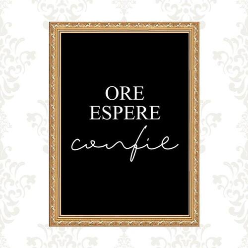 Quadro moldura dourada ore espere confie 24x18cm Acabamento: com acetato Informações do produto tire todas as suas dúvidas no descritivo abaixo: decoração para quarto, sala, cozinha, escritório, área gourmet e muito mais. Chega de paredes vazias medidas - cada peça tem 24x18cm a5 . Material do papel - papel fotográfico brilhante de altíssima resolução acabamento - todos os quadros são acompanhados de vidro ou uma película de acetato para proteção da imagem conforme escolha . - os quadros são embalados de forma segura com plástico bolha com camada dupla de acordo com o tamanho dos quadros. - de 3 meses. Meu quadro chegou. Como posso fixá-lo Você precisa apenas de um martelo e um prego, pois os quadros já vão acompanhados de penduradores. Esta é a forma mais indicada. Caso prefira, você pode utilizar uma fita dupla face neste caso, sugerimos de alta qualidade para evitar que descole e seu quadro caia . Como posso limpar meu quadro A limpeza é feita como um móvel comum da sua casa. Apenas um pano seco ou espanador são suficientes para tal Marca: Não Informado