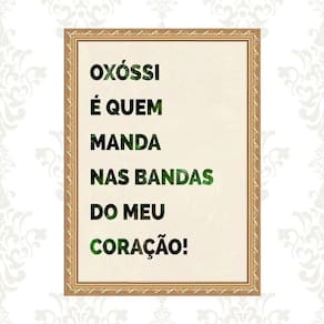 Quadro moldura dourada oxóssi frase 24x18cm Acabamento: com vidro Informações do produto tire todas as suas dúvidas no descritivo abaixo: decoração para quarto, sala, cozinha, escritório, área gourmet e muito mais. Chega de paredes vazias medidas - cada peça tem 24x18cm a5 . Material do papel - papel fotográfico brilhante de altíssima resolução acabamento - todos os quadros são acompanhados de vidro ou uma película de acetato para proteção da imagem conforme escolha . - os quadros são embalados de forma segura com plástico bolha com camada dupla de acordo com o tamanho dos quadros. Garantia - garantia de 3 meses. Meu quadro chegou. Como posso fixá-lo Você precisa apenas de um martelo e um prego, pois os quadros já vão acompanhados de penduradores. Esta é a forma mais indicada. Caso prefira, você pode utilizar uma fita dupla face neste caso, sugerimos de alta qualidade para evitar que descole e seu quadro caia . Como posso limpar meu quadro A limpeza é feita como um móvel comum da sua casa. Apenas um pano seco ou espanador são suficientes para tal