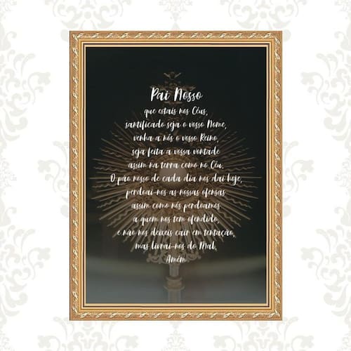 Quadro moldura dourada pai nosso ostensório 24x18cm Acabamento: com vidro Informações do produto tire todas as suas dúvidas no descritivo abaixo: decoração para quarto, sala, cozinha, escritório, área gourmet e muito mais. Chega de paredes vazias medidas - cada peça tem 24x18cm a5 . Material do papel - papel fotográfico brilhante de altíssima resolução acabamento - todos os quadros são acompanhados de vidro ou uma película de acetato para proteção da imagem conforme escolha . - os quadros são embalados de forma segura com plástico bolha com camada dupla de acordo com o tamanho dos quadros. - de 3 meses. Meu quadro chegou. Como posso fixá-lo Você precisa apenas de um martelo e um prego, pois os quadros já vão acompanhados de penduradores. Esta é a forma mais indicada. Caso prefira, você pode utilizar uma fita dupla face neste caso, sugerimos de alta qualidade para evitar que descole e seu quadro caia . Como posso limpar meu quadro A limpeza é feita como um móvel comum da sua casa. Apenas um pano seco ou espanador são suficientes para tal Marca: Não Informado