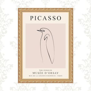 Quadro moldura dourada picasso - pinguim 33x24cm Acabamento: com acetato Informações do produto tire todas as suas dúvidas no descritivo abaixo: decoração para quarto, sala, cozinha, escritório, área gourmet e muito mais. Chega de paredes vazias medidas - cada peça tem 33x24cm a4 . Material do papel - papel fotográfico brilhante de altíssima resolução acabamento - todos os quadros são acompanhados de vidro ou uma película de acetato para proteção da imagem conforme escolha . - os quadros são embalados de forma segura com plástico bolha com camada dupla de acordo com o tamanho dos quadros. Garantia - garantia de 3 meses. Meu quadro chegou. Como posso fixá-lo Você precisa apenas de um martelo e um prego, pois os quadros já vão acompanhados de penduradores. Esta é a forma mais indicada. Caso prefira, você pode utilizar uma fita dupla face neste caso, sugerimos de alta qualidade para evitar que descole e seu quadro caia . Como posso limpar meu quadro A limpeza é feita como um móvel comum da sua casa. Apenas um pano seco ou espanador são suficientes para tal