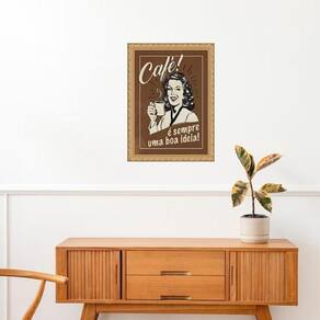 Quadro moldura dourada retrô café 24x18cm Acabamento: com vidro Informações do produto tire todas as suas dúvidas no descritivo abaixo: decoração para quarto, sala, cozinha, escritório, área gourmet e muito mais. Chega de paredes vazias medidas - cada peça tem 24x18cm a5 . Material do papel - papel fotográfico brilhante de altíssima resolução acabamento - todos os quadros são acompanhados de vidro ou uma película de acetato para proteção da imagem conforme escolha . - os quadros são embalados de forma segura com plástico bolha com camada dupla de acordo com o tamanho dos quadros. Garantia - garantia de 3 meses. Meu quadro chegou. Como posso fixá-lo Você precisa apenas de um martelo e um prego, pois os quadros já vão acompanhados de penduradores. Esta é a forma mais indicada. Caso prefira, você pode utilizar uma fita dupla face neste caso, sugerimos de alta qualidade para evitar que descole e seu quadro caia . Como posso limpar meu quadro A limpeza é feita como um móvel comum da sua casa. Apenas um pano seco ou espanador são suficientes para tal